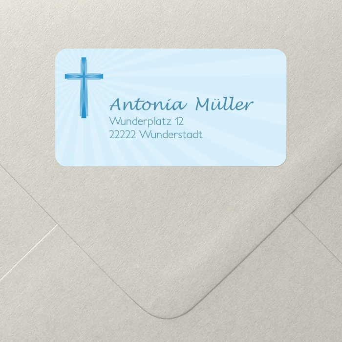 Das kleine blaue Kreuz in der linken Ecke dieses Adressaufklebers ist ein echter Hingucker. Ihr Name und Ihre Anschrift stehen hier ganz im Mittelpunkt, und können so sicher nicht mehr übersehen werden! Jeder wird gleich neugierig auf den Inhalt dieses Umschlags sein…