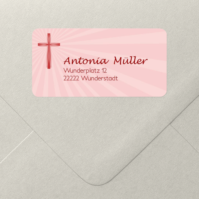 In warmem Rot ist das kleine Kreuz auf diesem Adressaufkleber nicht zu übersehen. Es lenkt den Blick gekonnt auf Ihren Namen und Ihre Anschrift, die so schnell ganz im Mittelpunkt stehen. Machen Sie so auf sich aufmerksam, und niemand wird mehr den Absender übersehen.