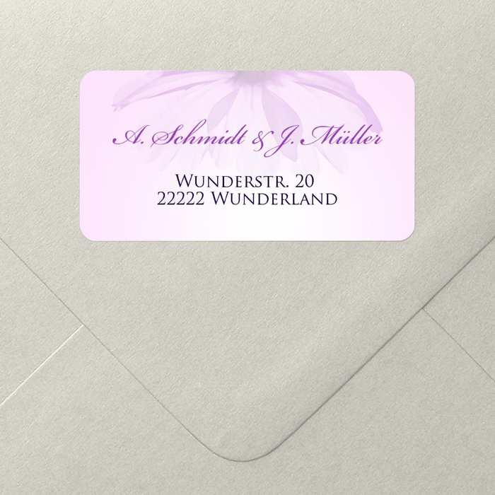 Der Adressaufkleber mit einer zarten Blume in Lila stellt einen wunderbaren Zusatz zu Ihrer Einladung dar. Jeder Empfänger wird von dieser Eleganz beeindruckt sein.