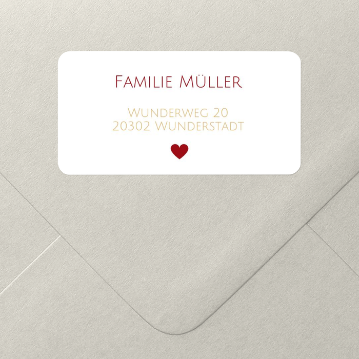 Dieser klar definierte Adressaufkleber sorgt dafür, dass die Karten anlässlich der Geburt Ihres Babys auch ganz bestimmt die richtigen Empfänger erreichen. Die Aufkleber sind klar und übersichtlich strukturiert und setzen lediglich einen herzlichen Akzent.
