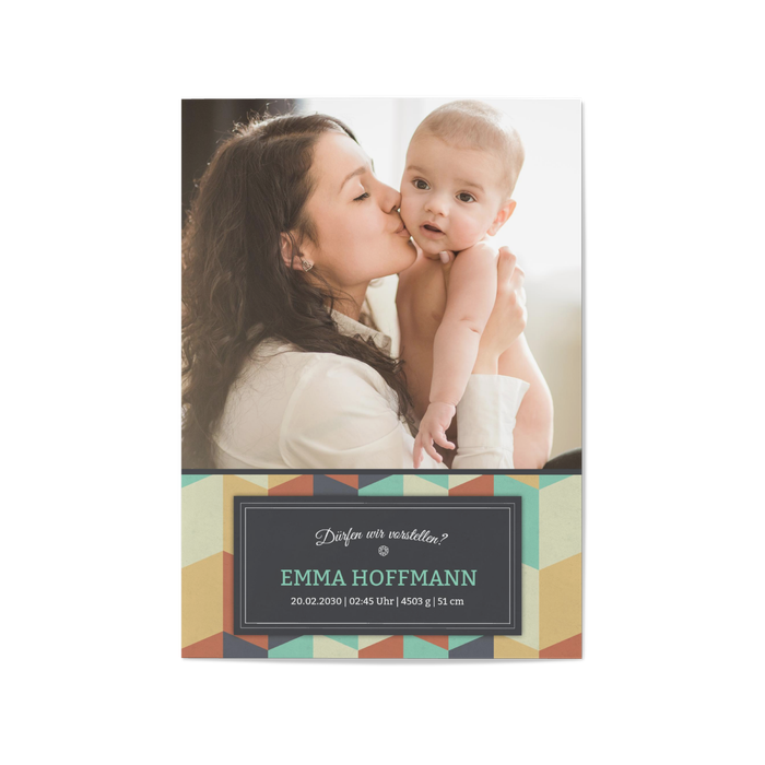 Babykarte können Sie bequem von zu Hause aus mitgestalten. Individuell und kreativ passen Sie die entsprechenden Text'und Fotofelder an und erhalten ein Unikat, auf dem Sie die wunderschöne Zeit, in der Ihr