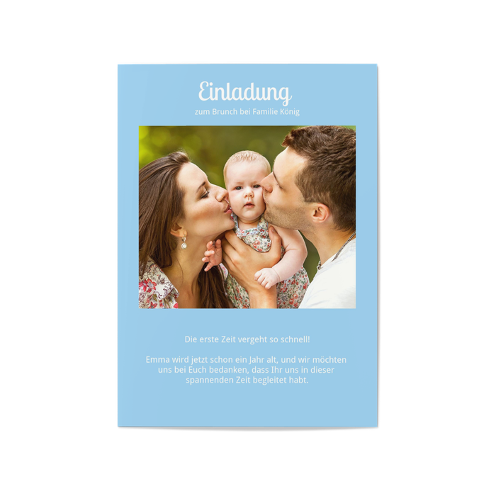 Hoch - Ein Foto - Text oben & unten - Blau: