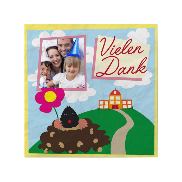 Nachdem die Einschulungsparty Ihres Kindes fröhlich und lustig von Statten gegangen ist, all die tollen Glückwünsche, Ratschläge und natürlich auch die tollen und praktischen Geschenke verteilt wurden, ist es an der Zeit „Danke“ zu sagen. Dafür ist diese nette und in fröhlich-munterem Gelb gehaltene Karte gemacht. Sie zeigt den Gästen und Gratulanten, dass der Kleine bzw. die Kleine sich sehr gefreut hat und einen guten Schulstart hatte.
