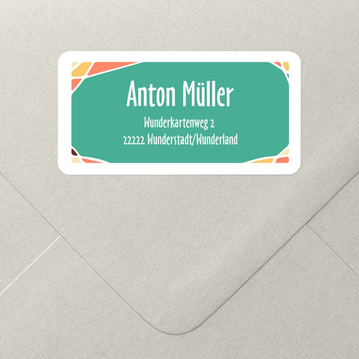 Mit einer tollen Farbkombination überrascht der Adressaufkleber Kirchenglas in Retro. Er rundet Ihre Einladung zur passenden Karte Kirchenglas in Retro perfekt ab. Darüber freut sich die ganze Familie. Aber auch jeden anderen Brief können Sie mit diesem coolen Design aufpeppen.