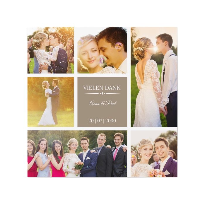 Die Dankeskarte ist wunderschön geworden! So kann man den Gästen doch eine Vielzahl der Bilder zeigen,die man gemacht hat und jeder kann sich nochmal gut erinnern!