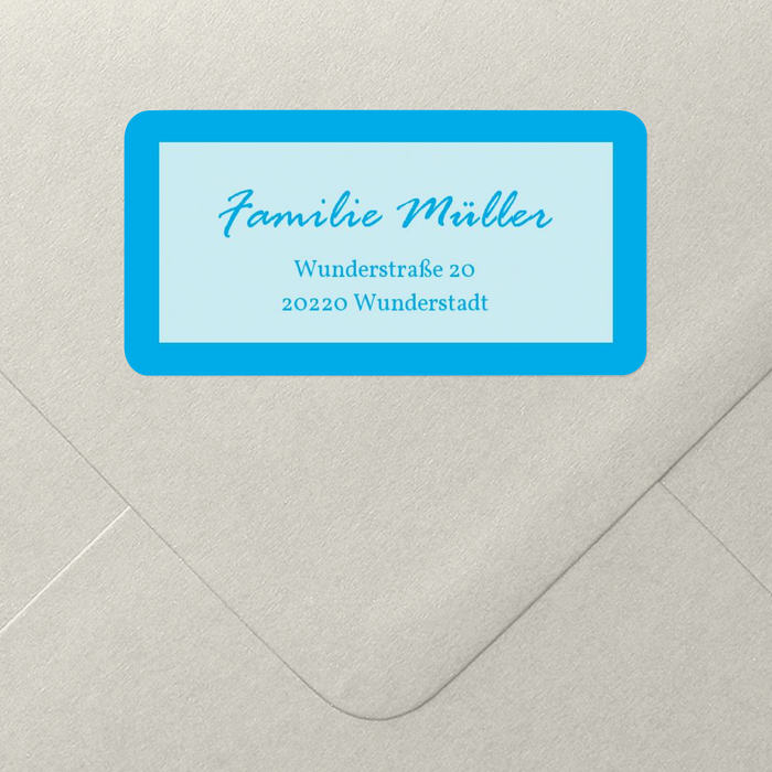 Im blauen Rahmen kommen Ihr Name und Ihre Anschrift besonders gut zur Geltung. Diesen Adressaufkleber übersieht sicher niemand! Auf jedem Briefumschlag sticht er sofort ins Auge und gibt so gleich den entscheidenden Hinweis auf den Absender.