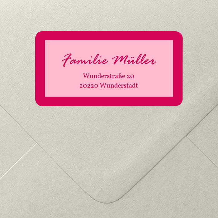 In hellem Pink und dunklem Himbeerton fügt sich dieser Adressaufkleber wunderbar auf jeden Briefumschlag. Für Ihren Namen und Ihre Anschrift bietet sich hier genug Platz. So machen Sie garantiert jeden auf den Absender neugierig.