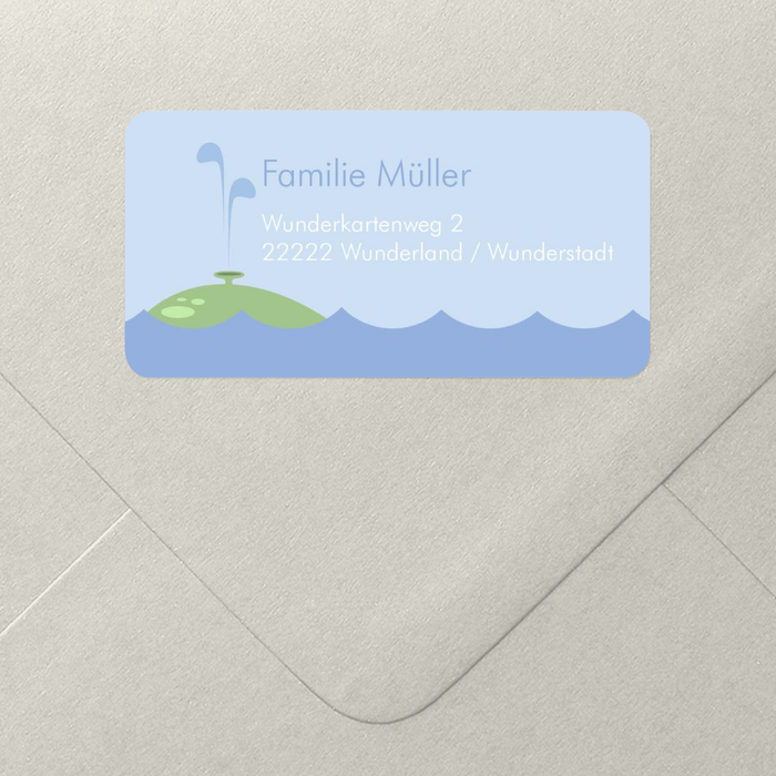Aus blauen Fluten taucht ein kleiner Babywal auf, noch ist nur sein Rücken zu sehen. Er bringt Nachrichten zu den Empfängern Ihrer Post, und will jede erzählen, woher er kommt! Diesen süßen Adressaufkleber wird sicher niemand mehr übersehen.