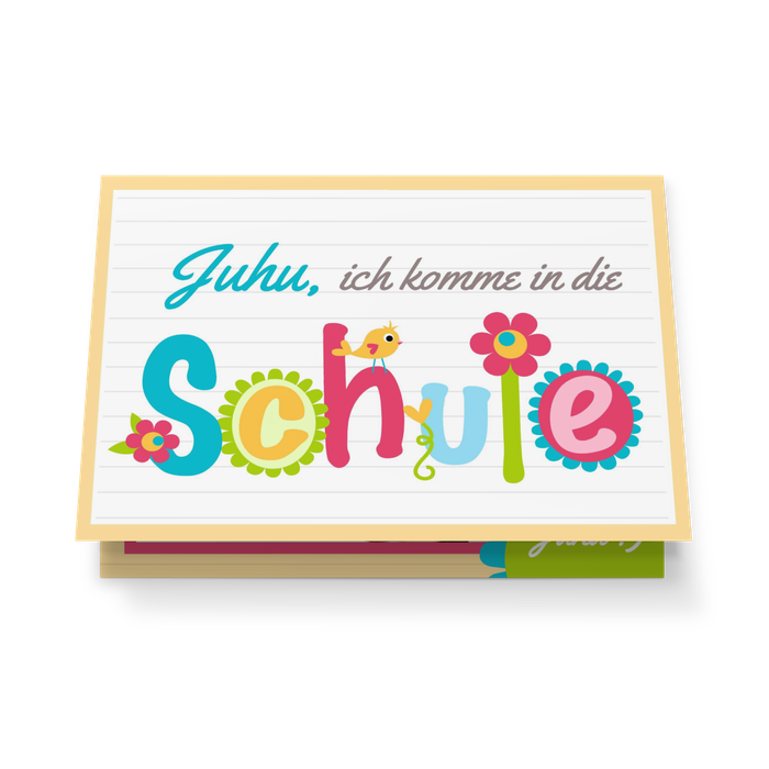 1, 2, 3 – kommt seid dabei! Wenn die Einschulung Ihres Kindes bevorsteht, ist die zauberhaft gestaltete Wunderkarte Bunte Schule in Orange ein absoluter Volltreffer. Ergänzen Sie die Einladung mit ein paar tollen Bildern. Ihre Familie und Freunde werden begeistert an diesem Ereignis teilnehmen.