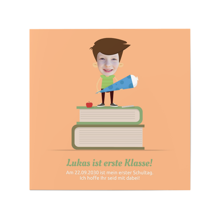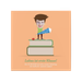 Junge auf Bücherstapel - Orange