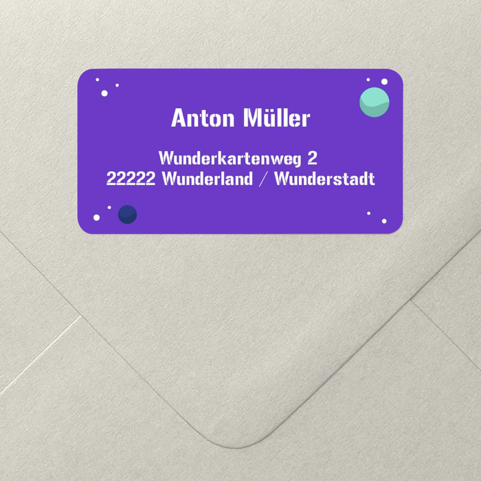 Für eine besonders schöne Verzierung Ihrer Botschaften an Freunde sind diese violetten Adressaufkleber ideal. Ein dunkler Nachthimmel mit Sternen und Planeten rahmt Ihre Anschrift auf kreative Weise ein und wertet jeden Briefumschlag auf.