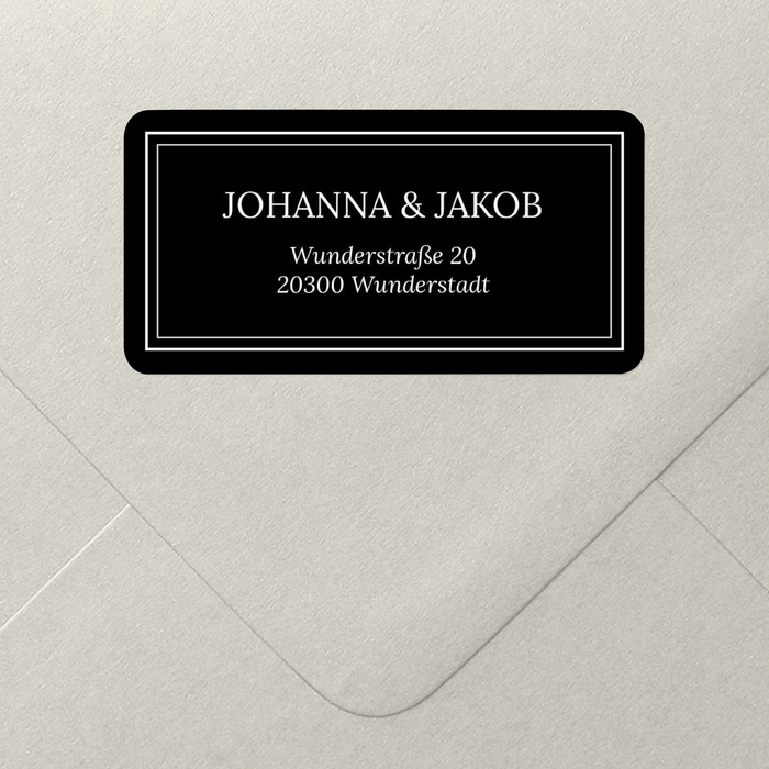 Da bei der Hochzeit so viele Entscheidungen anstehen, sollten Sie keine Zeit mit Adressenschreiben vergeuden. Nutzen Sie einfach einen Adressaufkleber in elegantem Schwarz passend zu Ihrer Einladung zur Hochzeit.