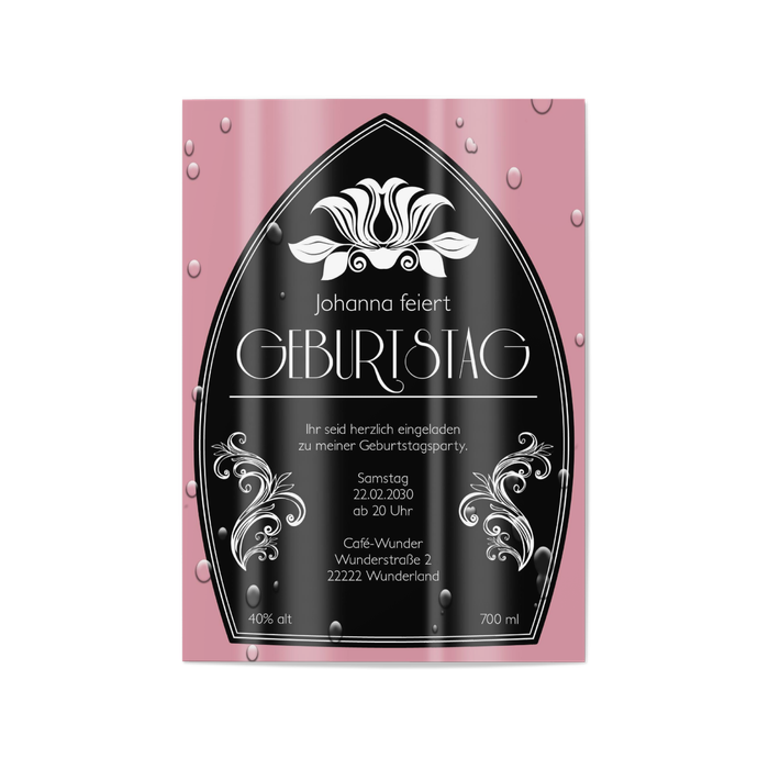 Geburtstagskarten sahen bisher immer gleich aus - nun aber gibt es diese Karte als Champagneretikett in Rosé. Durch die ungewöhnliche Optik und die klare Assoziation mit leckerem Champagner wird unweigerlich Vorfreude auf die bevorstehende Party ausgelöst. Schnelle Rückmeldungen der Eingeladenen sind daher inklusive.