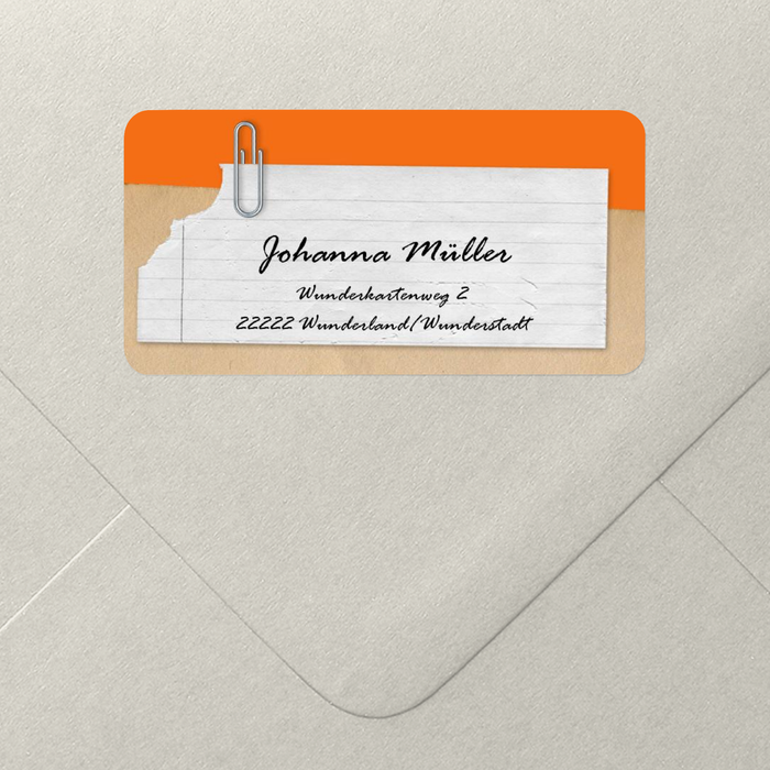 In knalligem Orange kommt dieser Adressaufkleber passend zu unserer Mixtape-Einladungskarte. Er kann natürlich auch gut mit anderen Karten kombiniert werden, um Ihre Briefumschläge zu verschönern und um lästige Schreibarbeit zu sparen. Namen und Adresse eintragen, schon fertig!