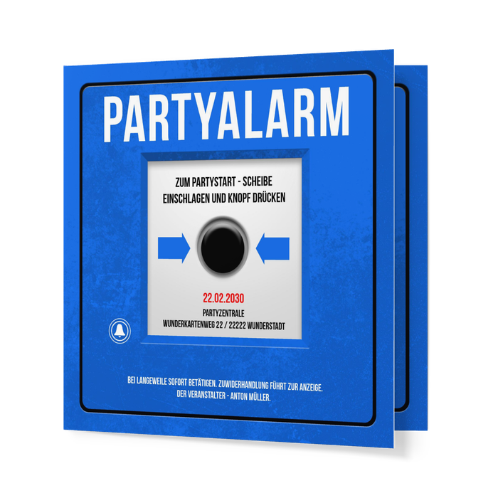 Diese Einladungskarte schlägt garantiert wie eine Bombe ein. Denn die schrille Wunderkarte Partyalarm in Blau verbreitet gute Stimmung. Schnell noch ein Partyfoto einsetzen, Datum und Ort dazu und schon kann die Feier starten. Stellen Sie schon mal die Getränke kalt!