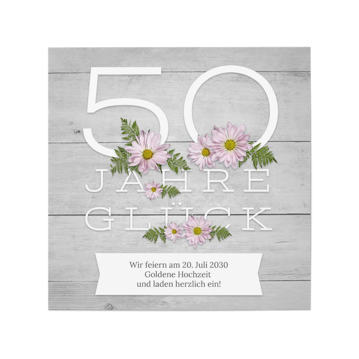 Einladungskarten Goldenen Hochzeit 'Blumen auf Holz'
