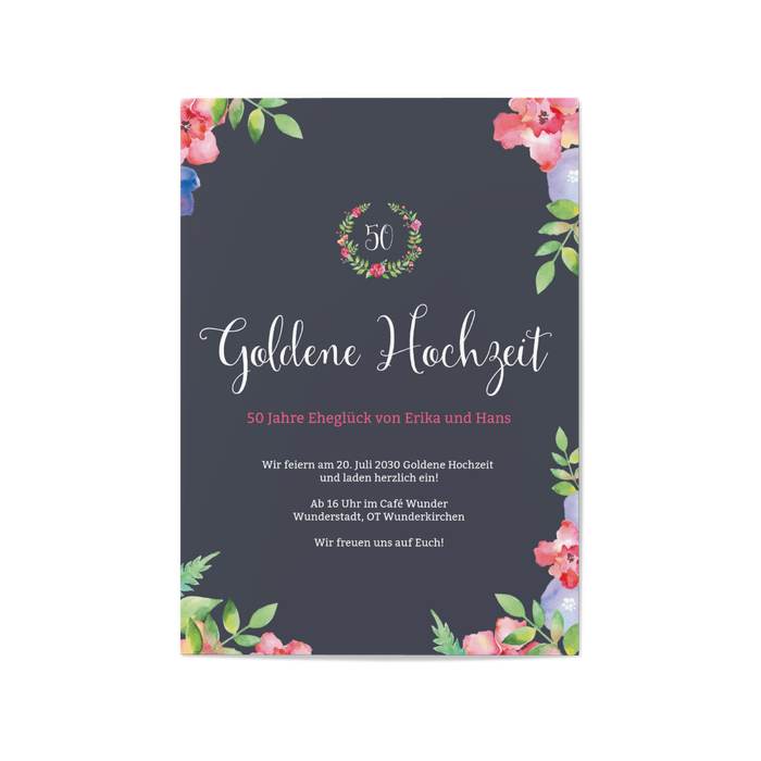 Einladungskarten Goldene Hochzeit 'Blumenrahmen'