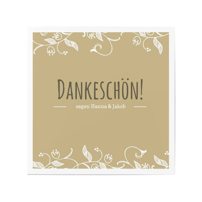 Ein Fest wird erst lebendig, wenn die richtigen Gäste dabei sind. Mit der zauberhaften Dankeskarte Blumenranke können Sie Ihrer Familie, Ihren Freunden und Bekannten ein bisschen etwas zurückgeben, was diese Ihnen zu Ihrer Goldhochzeit geschenkt haben.