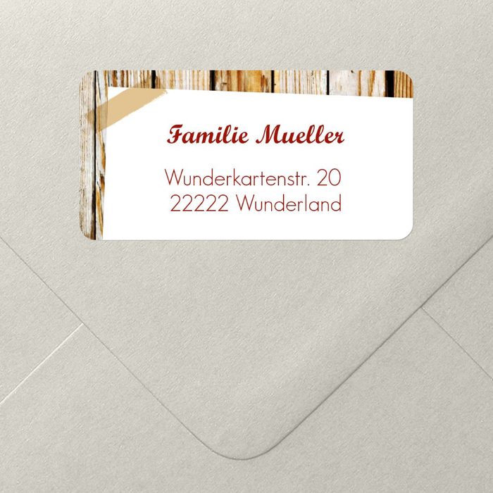 Passen zu unserer Einladungskarte Landliebe haben wir diesen schönen Adressaufkleber im rustikalen Landhausstil für Sie gestaltet. Alles, was Sie tun müssen, ist ein Mal Ihren Namen und Ihre Adresse eintragen - fertig ist Ihr persönlicher Adressaufkleber zum Verschönern Ihrer Briefumschläge!