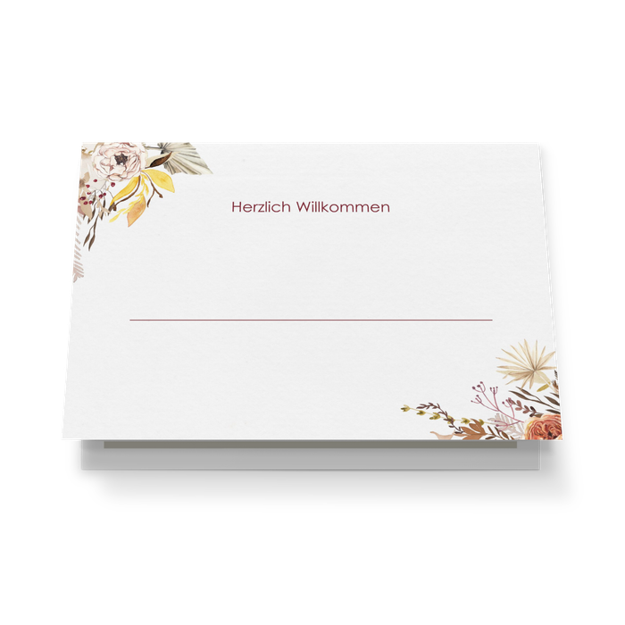 Tischkarte Hochzeit Trockenblumen in Weiß