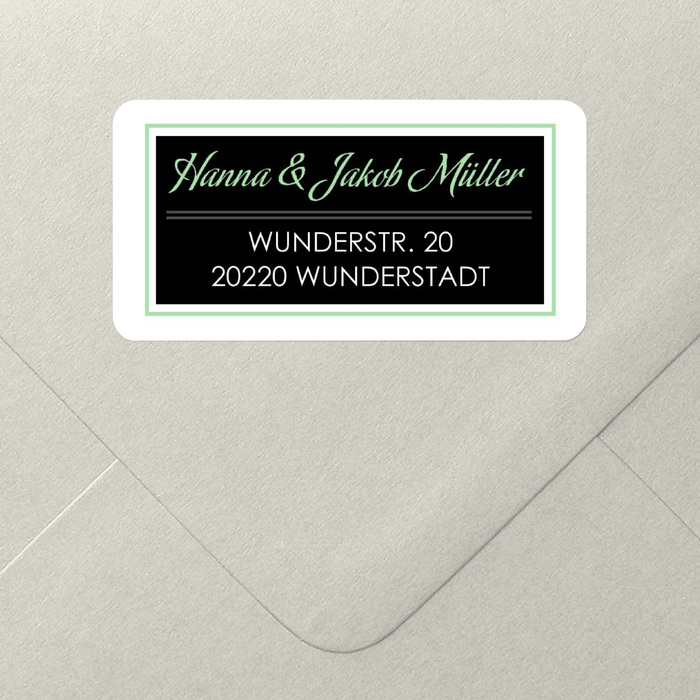 Der dezente Farbeinsatz bei dem Adressaufkleber Typografie in Grün wirkt sehr elegant. Ob als passender Aufkleber für Ihre gesamte Hochzeitspost, wie Save the Date-Karten, Einladungen und Dankeskarten, oder für Ihre private Korrespondenz – dieser Adressaufkleber macht stets eine gute Figur.