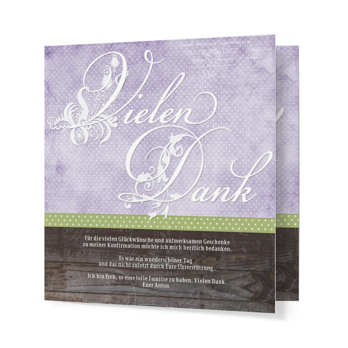 Viele haben Sie anlässlich Ihrer Konfirmation mit Geschenken oder Glückwünschen bedacht, jetzt ist es an der Zeit, sich dafür zu bedanken. Blumige Elemente schmücken den großen Schriftzug, und bilden einen hübschen Kontrast zu dem Holz. Begeistern Sie Ihre Konfirmationsgäste mit diesem Andenken.