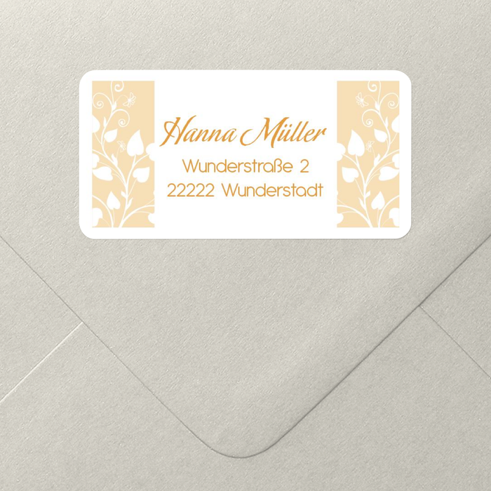Der klassische Adressaufkleber mit Efeu in Apricot. Durch die zarten Efeuranken an den Seiten des Aufklebers bekommt dieser einen besonders edlen Look und eignet sich besonders gut für Einladungs- und Glückwunschkarten. Neben der Farbe Apricot ist der Aufkleber auch in Grün und Eisblau verfügbar.