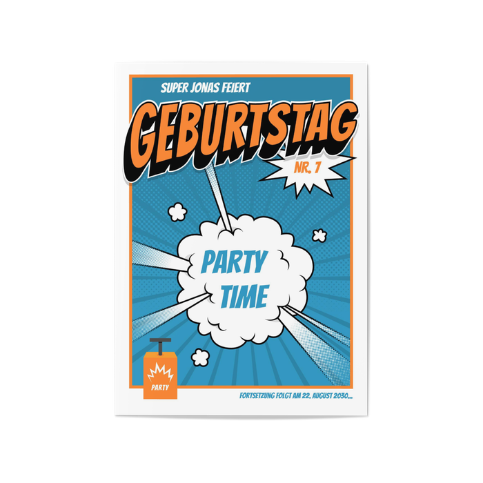 Kartenmotiv „Partyknaller“ kommt im Marvel-Comic-Look daher und richtet sich ganz konkret an echte Superhelden! Egal, ob Supermen oder -girls! Mit dieser