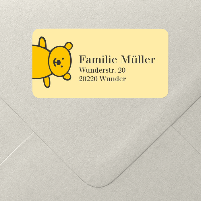 Sie planen eine Feier anlässlich des Geburtstages Ihres Kleinen? Dann sind Sie mit diesen knuffigen gelben Adressaufklebern bestens bedient. Diese süßen Etiketten, mit dem Teddybären drauf, sind genau das richtige, wenn Sie sicherstellen wollen, dass Ihre Gäste und Freunde auch Ihre Einladungen erhalten.