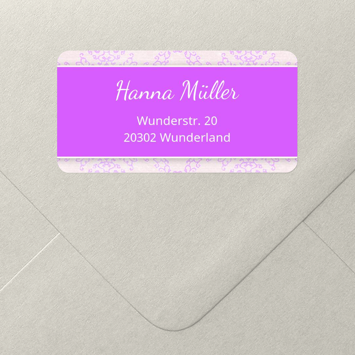Viele Gäste sind für die bevorstehende Kommunion einzuladen und eine Menge an Post ist zu erledigen. Daher ist es einfach, mit Adressaufklebern "Kommunion mit Banderole in Lila" die Einladungskarten zu bekleben. Sie sind leicht zu erstellen und alle wichtigen Daten des Adressaten finden darauf Platz.