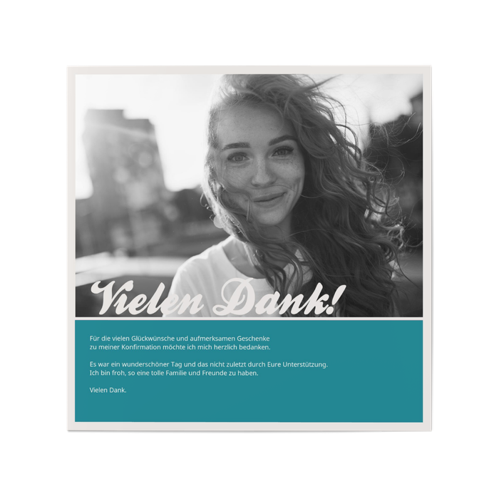 Es war ein unvergessliches Fest, an das Sie sich immer erinnern werden. Dank all Ihren Freunden und Verwandten wurde Ihre Konfirmation einmalig, und genau dafür möchten Sie allen nun auch „Vielen Dank!“ sagen. So mancher hat Sie dabei mit lieben Worten oder aufmerksamen Geschenken bedacht. Geben Sie Ihnen nun etwas zurück, und schaffen Sie mit einem hübschen Foto und einem persönlichen Dankestext ein ganz eigenes Erinnerungsstück.