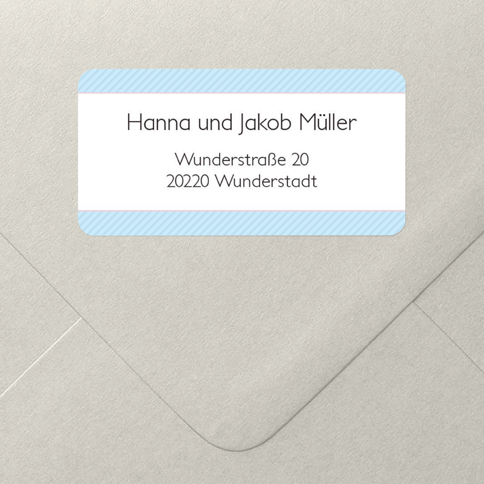 Schlicht und doch elegant wirkt dieser Aufkleber auf den Empfänger Ihrer Post. Das zarte Streifenmuster bildet einen perfekten Rahmen um Ihren Namen und Anschrift. Der Adressaufkleber „Meine Taufzeremonie“ passt nicht nur perfekt zu der gleichnamigen Taufeinladung, sondern ist auch separat ein echter Hingucker.