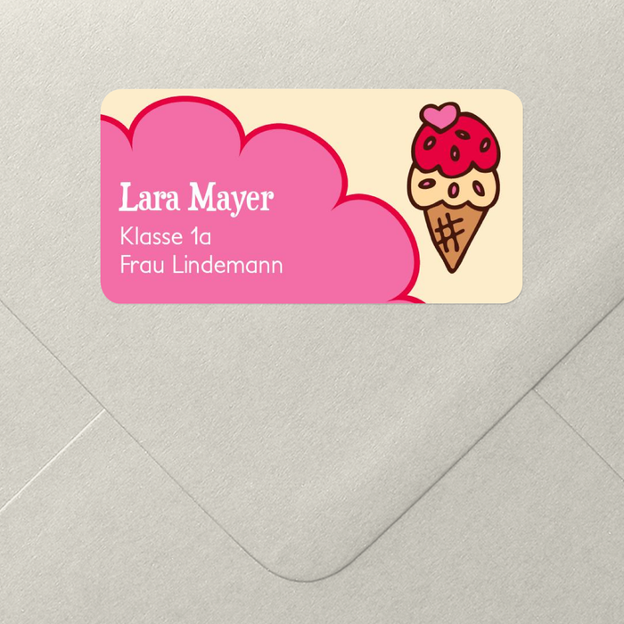 Namensetikett Schule Eis in Erdbeere