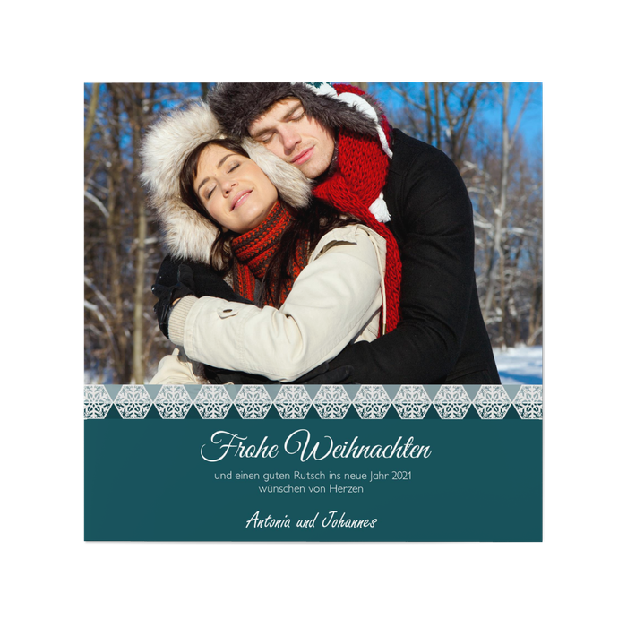 Für den schnellen aber dennoch liebevollen Weihnachtsgruß eignet sich diese Wunderkarte in angesagtem Blau hervorragend. Modern interpretierte Schneeflocken bringen frischen Style und einen coolen Look in die Weihnachtspost. Und ganz nebenbei noch lieb gemeinte Weihnachtsgrüße.