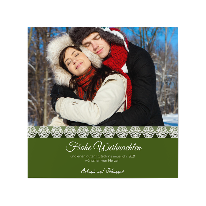 Trendy und cool kann es auch an Weihnachten zugehen. Mit dieser stylischen Wunderkarte in angesagtem Grün punkten Sie bestimmt bei Ihren Freunden und der Familie. Versehen mit ihren persönlichen Grüßen für das neue Jahr wird die Karte ein Volltreffer.