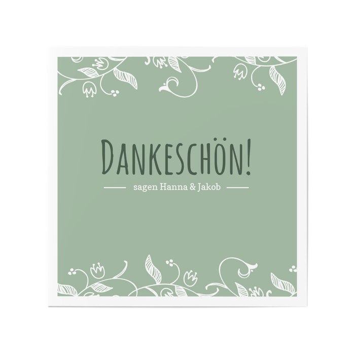 Manchmal sind es die kleinen Dinge, die eine große Wirkung haben – so wie ein Danke, das von Herzen kommt! Nutzen Sie die wundervolle Dankeskarte Blumenranke in Grün, um sich für die Glückwünsche und Geschenke zu Ihrer Silberhochzeit zu bedanken.