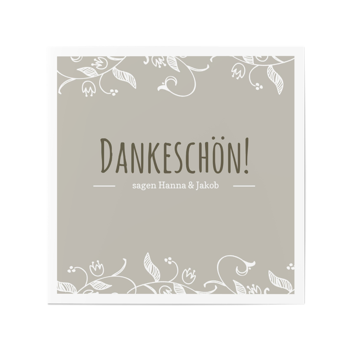 Eine tolle Geste an Ihre Gäste! Überraschen Sie Ihre Familie, Freunde und Nachbarn mit der stilvollen Dankeskarte Blumenranke. Denn erst durch ihren Besuch und die zahlreichen Glückwünsche und Aufmerksamkeiten wurde Ihre Silberhochzeit zu einem unvergesslichen Ereignis.