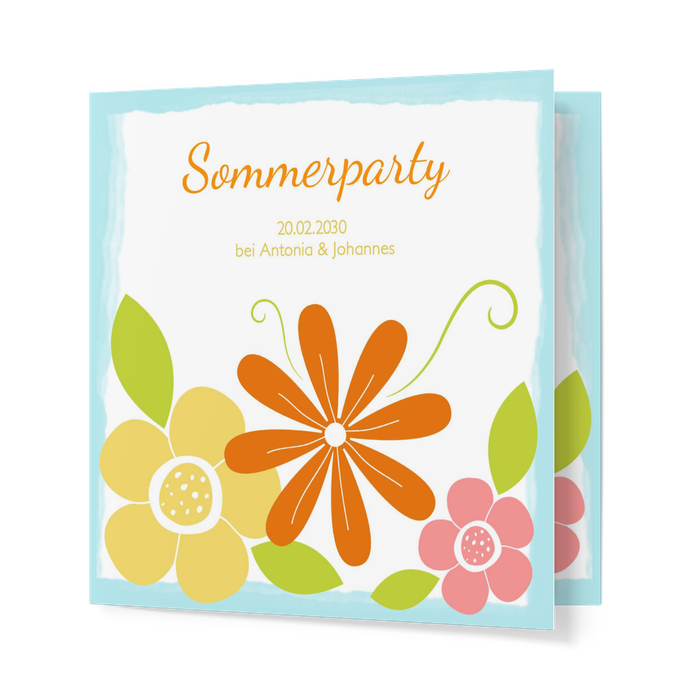 Sommer, Sonne, Sonnenschein! Laden Sie mit der fröhlichen Wunderkarte Sommerblumen in Blau zum Garten- oder Sommerfest ein. Ihre Freunde und Familie freuen sich bestimmt auch über ein lustiges Foto von Ihnen. So kommt Stimmung auf!