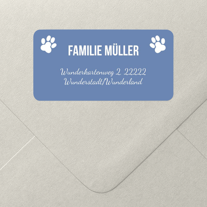 Der Adressaukleber mit der Tatze, passend zu unserer Weihnachtskarte mit der staunenden Katze. Den Adressaufkleber in Blau können Sie natürlich auch mit jeder anderen Karte kombinieren. Einfach Namen und Adresse eintragen, schon fertig. So bekommen Ihre Briefumschläge einen besonderen Touch. Frohe Weihnachten!