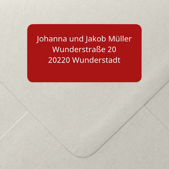 Dieser Adressaufkleber in Rot passt besonders gut zu unserer "tierischen" Weihnachtskarte mit dem flauschigen Hund. Aber auch sonst ist dieser einfache Aufkleber eine gute Wahl, wenn Sie einen schönen Hingucker für Ihre Umschläge benötigen. Obendrein sparen Sie sich jede Menge Schreibarbeit. Frohe Weihnachten!
