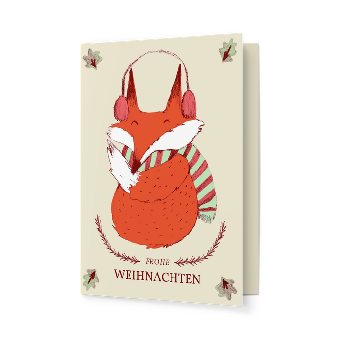 „Winterfuchs“! Das freche Motiv Ihrer Kartenvorlage ist eine drollige und originelle Abwechslung zu den gewöhnlichen Designs sonst üblicher