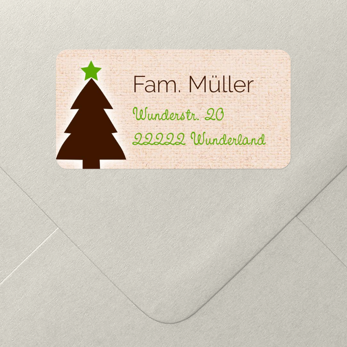 Tannenbaum und warmen Farben. Wenn das kein origineller Adressaufkleber ist.