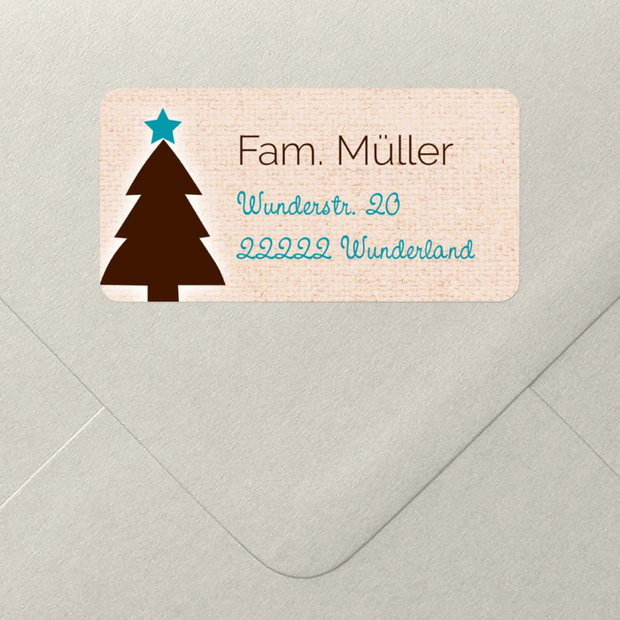 Der feierliche Adressaufkleber HoHoHo in Türkis passt ideal zu sämtlicher Weihnachtspost. Ein formschöner Tannenbaum mit Stern und eine leicht verspielte Schrift geben diesem Aufkleber einen festlichen und dennoch keinesfalls spießigen Charakter. Neben Türkis sind auch Rot und Grün als mögliche Farbvarianten wählbar.