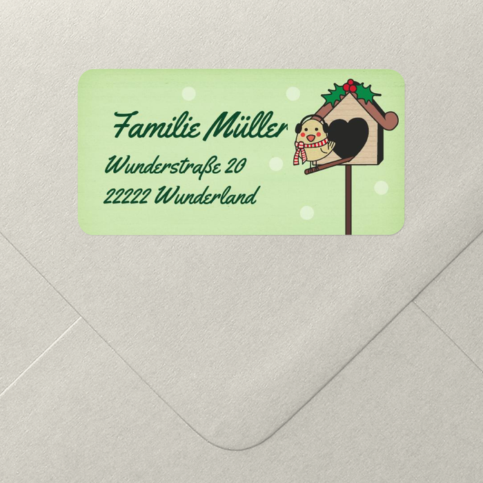 Wenn die Weihnachtspost mit diesem niedlichen Adressaufkleber Piepsie in Grün ins Haus flattert, dann freut sich jeder auf das Fest. Verschönern Sie Ihre Umschläge auch von außen und machen Sie so auf sich aufmerksam. Das wird eine schöne Bescherung!