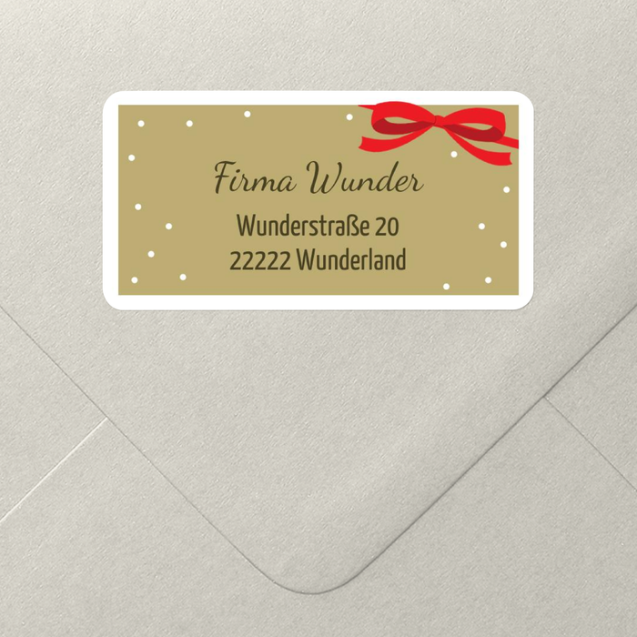 In der Bearbeitung der Weihnachtspost muss es manchmal schnell gehen. Dafür sind die goldenen Aufkleber mit dem roten Schleifchen in der Weihnachtszeit sehr gut geeignet. Mit der Adresse versehen, können Sie unkompliziert Ihre fertige Weihnachtspost etikettieren und zum Postamt schaffen.