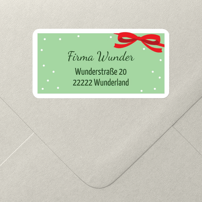 Diese zauberhaften Adressaufkleber mit dem roten Schleifchen lassen schon beim Bekleben Weihnachtsstimmung aufkommen. Zarte Schneeflöckchen rieseln auf dem grünen Hintergrund und geben einen schönen Kontrast zu dem von Ihnen gewählten Text. Mit den Auklebern lässt sich schnell die Weihnachtspost erledigen.