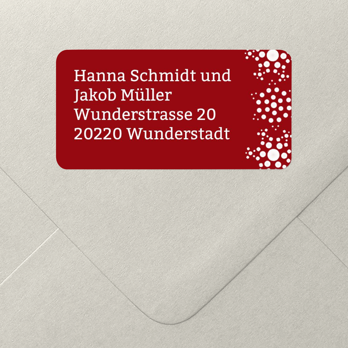 Der Adressaufkleber in Rot versprüht mit seinen Schneespuren schon beim Öffnen Ihrer persönlichen